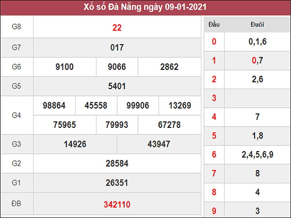 Phân tích kết quả XSDNG 9/1/2021 kỳ trước với giải đặc biệt, giải 8, lô về nhiều nháy, đầu số về nhiều và lô câm chi tiết nhất giúp người chơi đưa ra được dự đoán XSDNG 13/1/2021 chuẩn xác nhất.