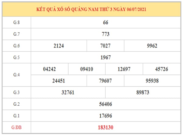 Xem lại kết quả xổ số Quảng Nam 6/7/2021