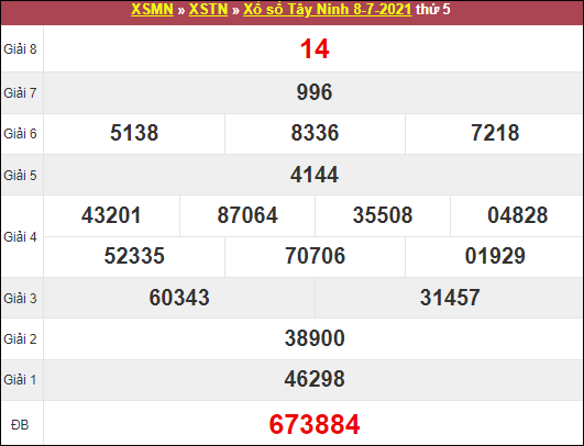 Xem lại kết quả xổ số Tây Ninh thứ 5 kì trước