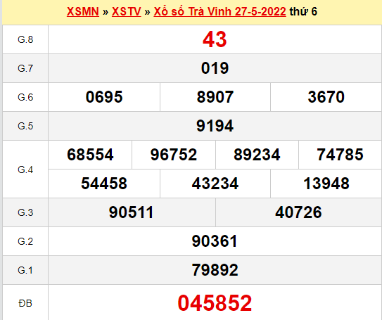 – Giải tám: 43